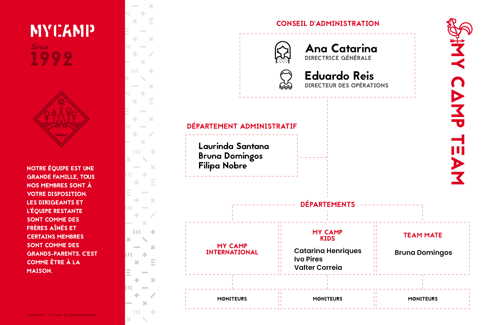 My Camp a le plaisir de présenter son équipe spécialisée, capable d’offrir aux enfants des moments uniques tous les ans. C’est une équipe solide, avec des capacités différentes, où la présence de tous est importante.